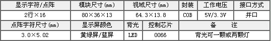 - 名稱:OCMC2X16A 白光黃綠屏3.3V