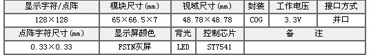 - 描述:顯示點陣:128X128,品牌:金鵬 灰屏,模塊尺寸:65X66.5X7 視域尺寸:48.78X48.78 控制IC:ST7541,封裝COG 串口 本液晶詳細資料在內(nèi)頁