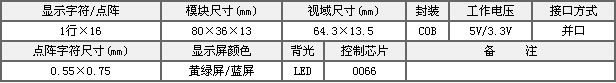 - 名稱(chēng):OCMC1X16A 黃綠屏5V