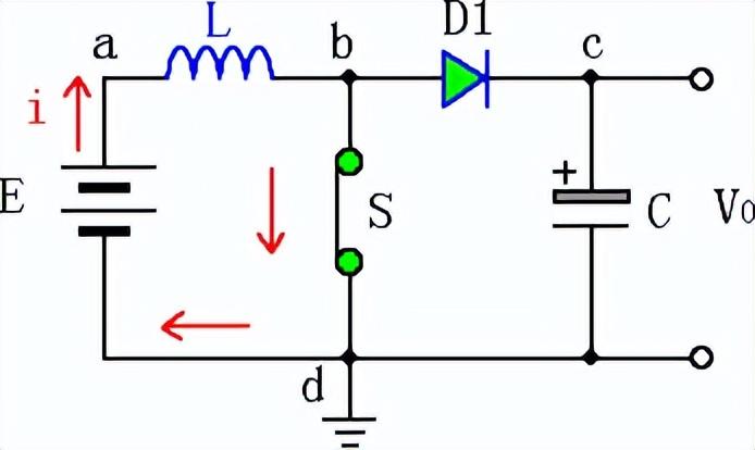 接下來(lái)通過(guò)開(kāi)關(guān)不斷地閉合、斷開(kāi),就可以不斷地輸出電壓U0,且該電壓U0高于電源電壓E,從而起到升壓的目的。
