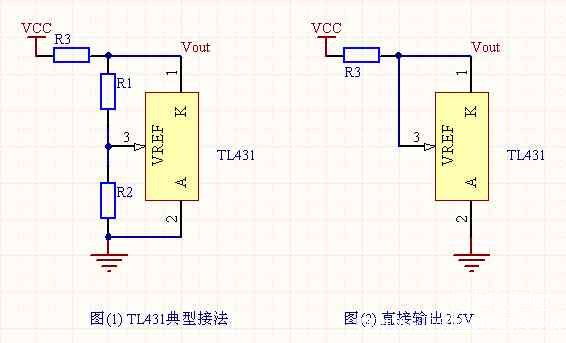 當(dāng)R1取值為0的時(shí)候,R2可以省略,這時(shí)候電路變成圖(2)的形式,TL431在這里相當(dāng)于一個(gè)2.5V穩(wěn)壓管。
